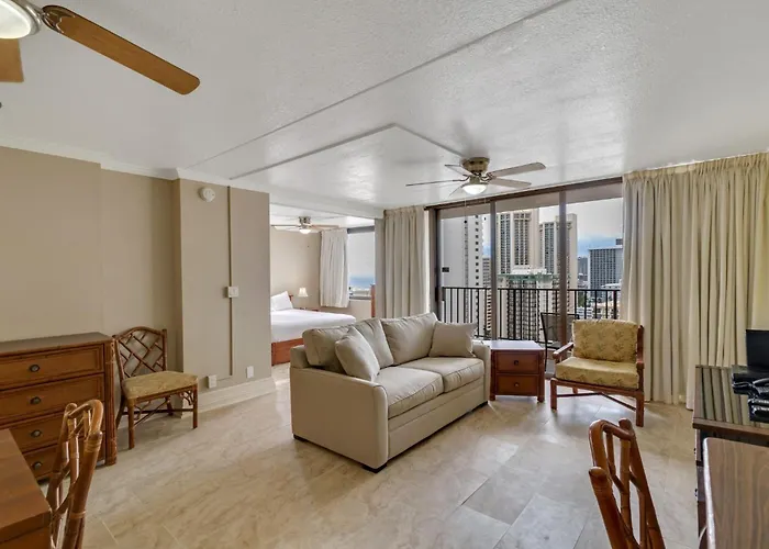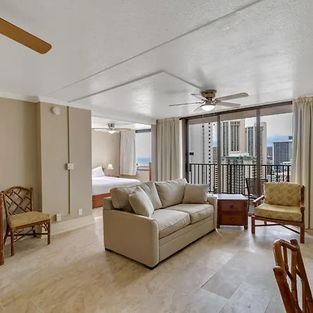 The 50 m² 22Nd Floor Condo With Stunning Ocean Views And Free Parking! Honolulu is located in Honolulu, merely a 7-minute walk from the Lucoral Museum, and boasts a Jacuzzi and a sauna. Offering access to a swimming pool, the apartment is a short way from the 42 - acre Honolulu Zoo.
